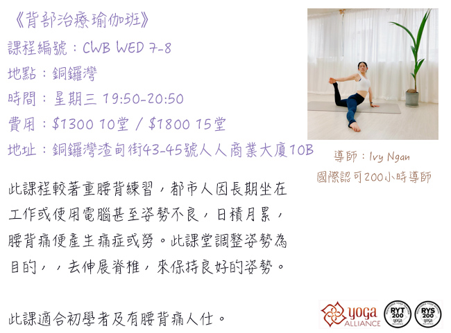 銅鑼灣瑜伽班 CWB WED 7-8