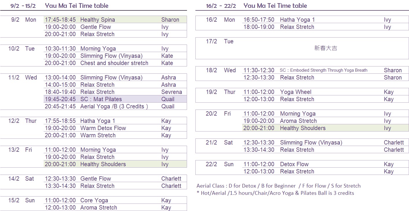 – 各地區瑜伽班