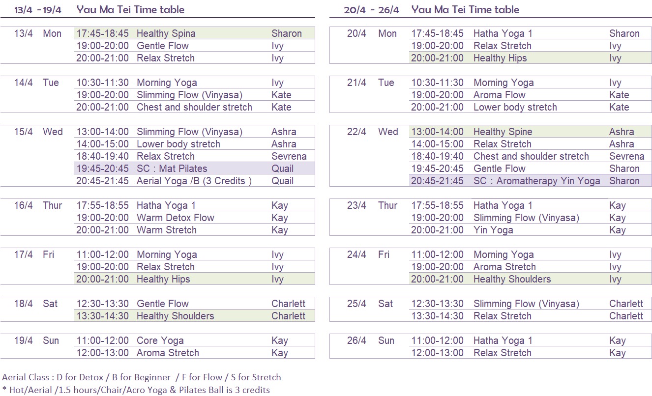 – 各地區瑜伽班