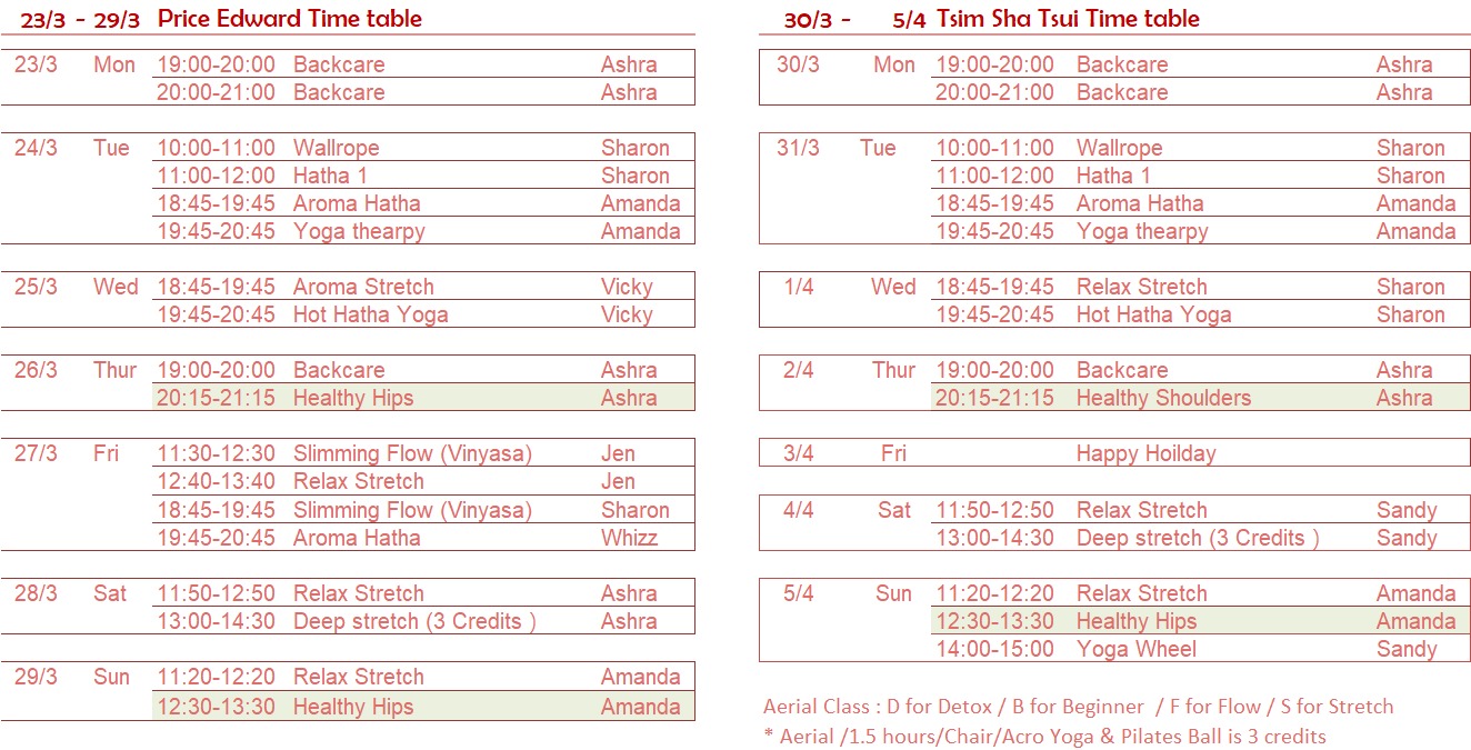 – 各地區瑜伽班